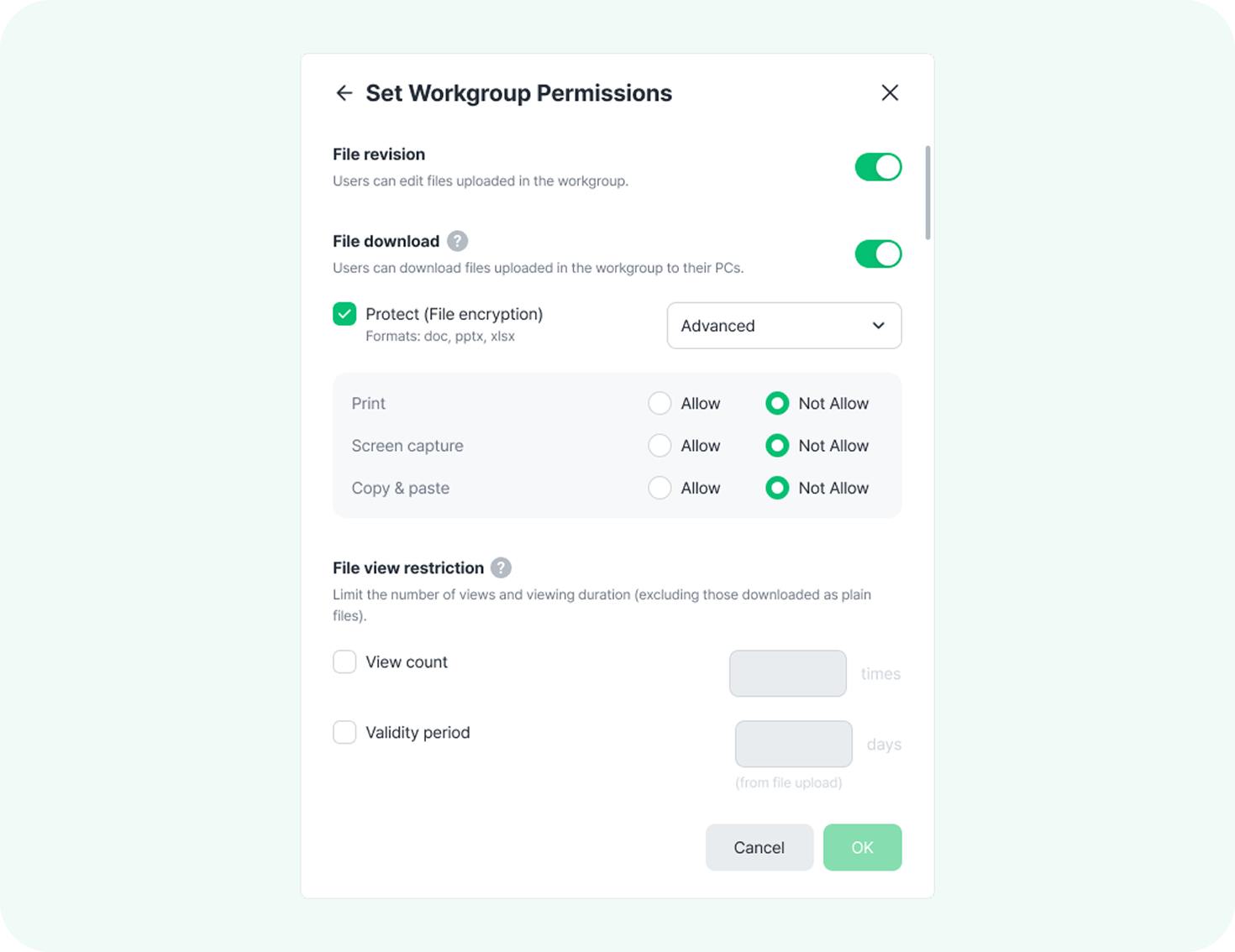 Educational institutions handle sensitive data, including research findings, student records, and proprietary course materials. Unauthorized access or data leaks can compromise institutional integrity. With Wrapsody eCo, administrators can enforce granular permission controls at both user and file levels, ensuring that only authorized individuals can view, edit, download, or share critical documents.